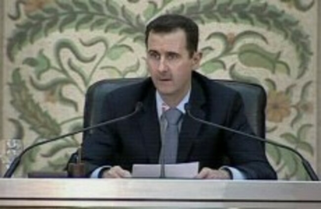 Syrian president Bashar Assad makes a speech in front of his cabinet in Damascus. AP
