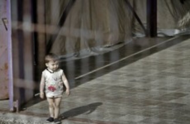 A Syrian boy peers out from a refugee camp on the Turkish/Syrian border on Saturday. Vadim Ghirda/AP/Press Association Images