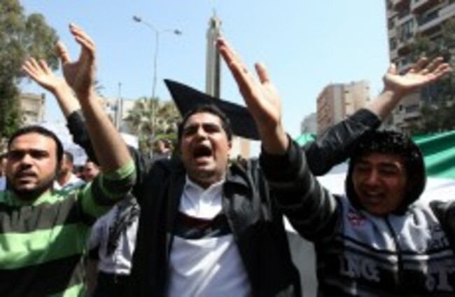 Anti-Syrian regime protesters chant slogans against Syrian President Bashar Assad during a demonstration in Beirut, Lebanon, Friday, April 6 Bilal Hussein/AP/Press Association Images