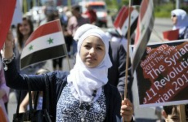 A young woman joins a solidarity protest for Syria in Switzerland. Sandro Campardo/AP/Press Association Images