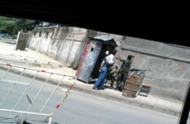 Mobile phone image of a checkpoint in Damascus, Syria. Foreign media are mostly banned from the country. AP Photo