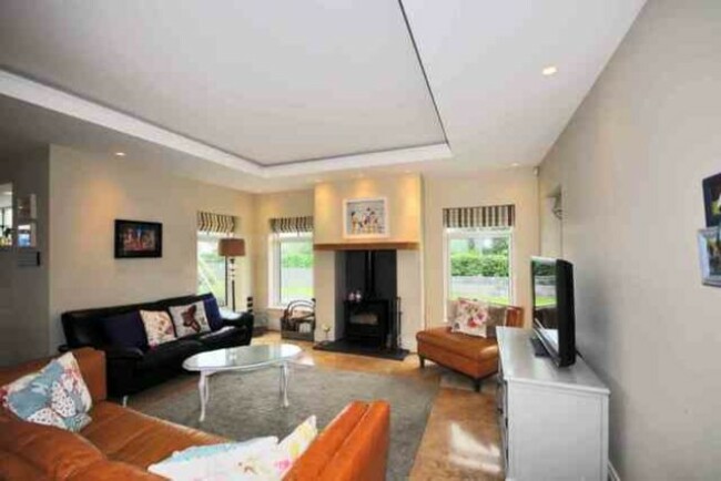 The house has a large dual aspect living room with bay windows, and two fireplaces. There is a dining room, kitchen with hand-painted kitchen units and integrated appliances, a utility room and a guest bathroom downstairs. Upstairs there are four double bedrooms, two of which are en-suite, and the family bathroom.