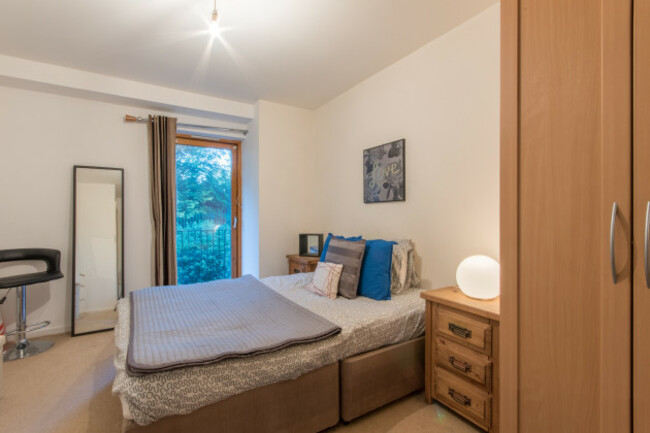 This one-bedroom apartment in Glasnevin, Dublin 9 is on the first floor of the apartment complex, with views over the Botanic Garden and Glasnevin Cemetery.