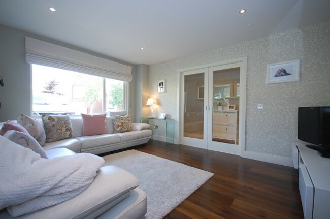 The house is three-storeys with a wood-floored living room, a fully fitted kitchen with integrated appliances and four bedrooms, one of which is en-suite. There is also a south-facing roof terrace.