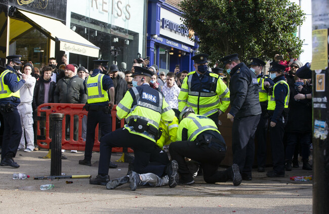 Fireworks and bottles where thrown during an anti-lockdown demonstration in Dublin in March. Sam Boal/RollingNews.ie