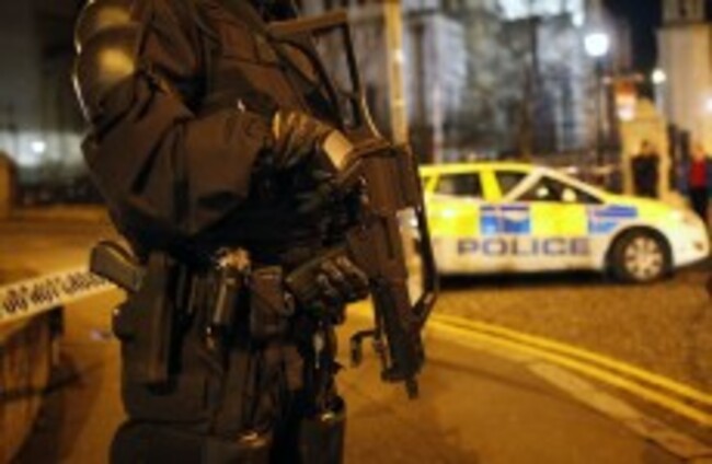 Armed police seal off the Cathedral Quarter last night. (Paul Faith/PA Wire)