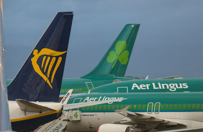 Aer Lingus and Ryanair planes seen grounded at Dublin Airport. Alamy Stock Photo