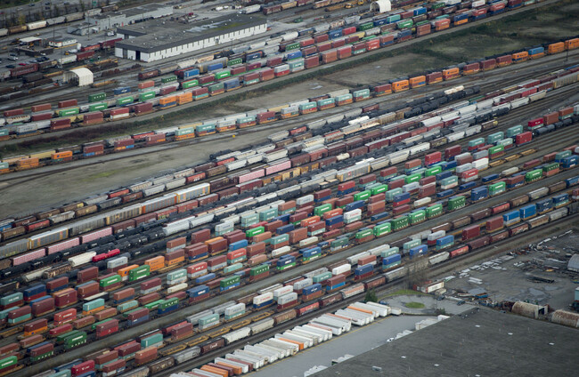 A freight train rail yard is pictured near Pitt Meadows, B.C., Canada Alamy Stock Photo