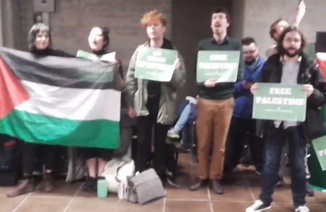 A Students for Justice in Palestine protest held at the theatre last night attended by about 40 students saw demonstrators waving Palestinian and chanting a number of slogans.