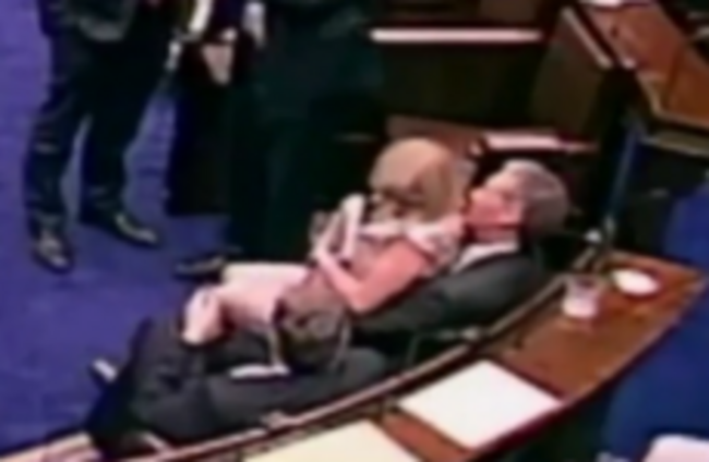 The infamous 'Lapgate' incident involving Fine Gael TDs Aine Collins and Tom Barry Screengrab via Oireachtas TV