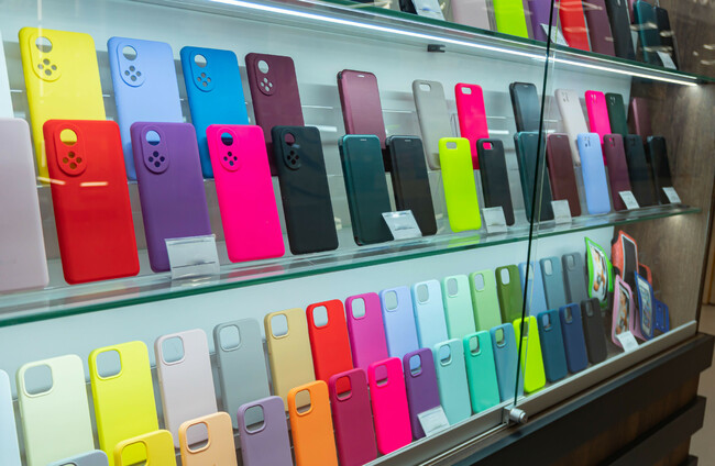 Showcase with cases for smartphones. (File photo) Alamy Stock Photo