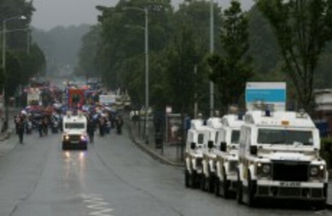 There is heavy police presence in the Twaddell and Woodvale areas tonight while the annual Twelfth of July season takes place. Orange Order parades are banned from marching at a certain section of the Crumlin Road.