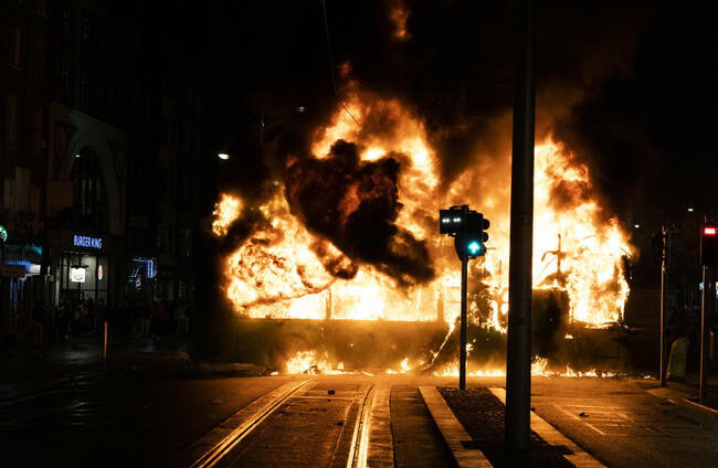 Photo of fire at the Dublin riots in November RollingNews.ie