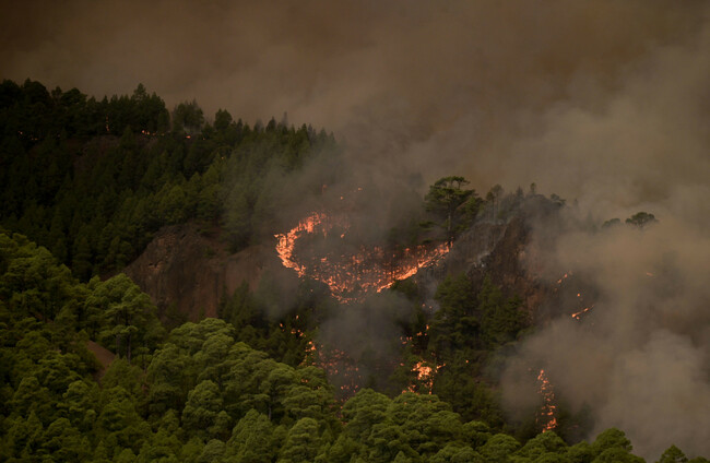 The fire, which broke out on Tuesday night, was raging through a forested area with steep ravines in the northeastern part of the island, part of the Canary Islands archipelago off northwestern Africa.