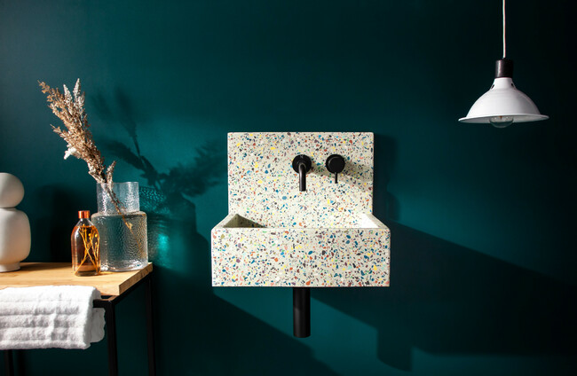 Jules - terrazzo - work in progress 2 Synk basins and shower trays are available in over 50 shades and terrazzo styles and are carefully sealed within and without to withstand years of use.