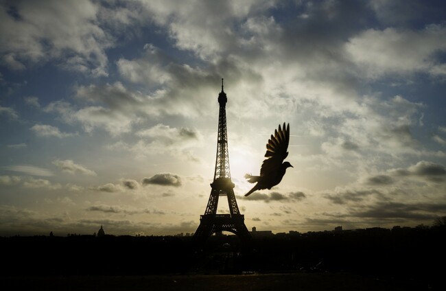 A bird flies in front of the Eiffel Tower during three days of national morning in France last November. Daniel Ochoa de Olza