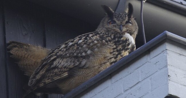 In this photo taken last month, an eagle owl sits under the roof of a building in Purmerend. AP/Press Association Images
