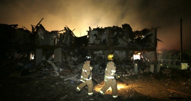 Firefighters check a destroyed apartment complex near the fertiliser plant AP Photo/LM Otero