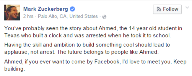 THERE HAS BEEN a lot of talk today about the 14-year-old Muslim boy who was put in handcuffs by police at a Texas school after he built an electronic clock.