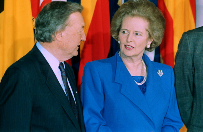 Margaret Thatcher and Charlie Haughey. DPA/PA Images