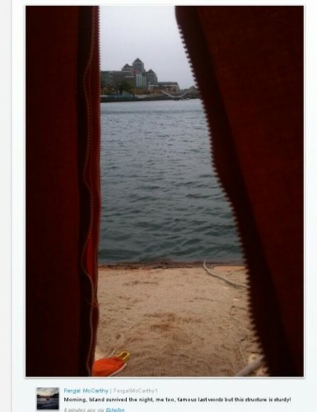 9. #NO MAN’S LAND The artist who has set up camp on an artificial island in the middle of the River Liffey in Dublin City Centre has survived his first night at the mercy of the elements. With 160kph winds expected to hit the country later today, let’s hope his home for the week, which he describes as ‘sturdy’ will withstand the winds!