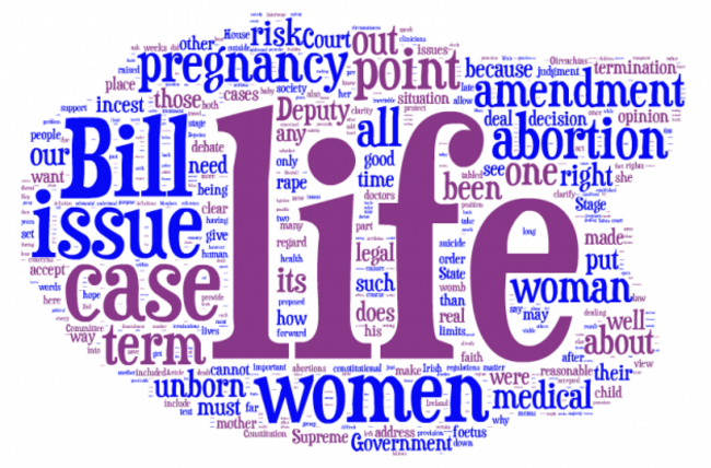 The conversation centred on the unborn’s right to life and the woman’s right to medical treatment. This word cloud shows the most commonly used words in the Dáil throughout the night.