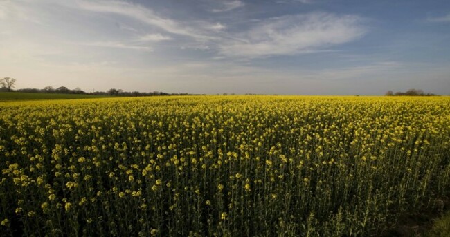 A field of rape seed comes to life due to the early spell of good weather in a farm outside Newbridge in County Kildare Eamonn Farrell/Photocall Ireland