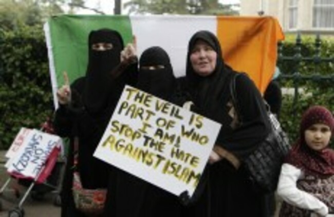 Members of the Irish Arab and Semite Solidarity movement protest outside the French Embassy in Dublin against the recent French ban on religious clothing. Niall Carson/PA Wire/Press Association Images