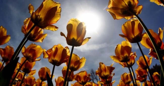 Tulips in full blossom are pictured against the sun in Munich, Germany, Friday, April 27, 2012 Matthias Schrader/AP/Press Association Images