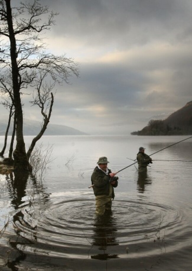 Salmon fishermen mark the first day of the Scottish Salmon season on the river Tay in Perthshire. (David Cheskin/PA Wire)