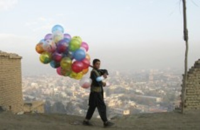 Mohammed Sarwar, 12, an Afghan boy who sells balloons, walks in a neighborhood in Kabul, Afghanistan, Thursday, Nov. 3, 2011. (AP Photo/Ahmad Jamshid) AP Photo/Ahmad Jamshid