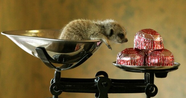 Tunnock, a three-week-old meerkat is weighed at Blair Drummond Safari Park. He weighs the same as four tea cakes. Andrew Milligan/PA Wire/Press Association Images