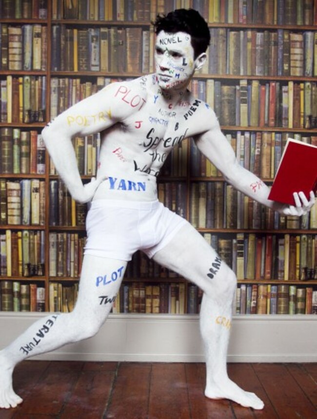 Body painted Ray Lee spreads the word with some of the words from some of the 54 writers books that will feature at this years Dublin Writers Festival Leon Farrell