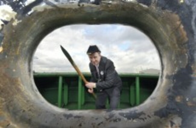 Respect mah authoritah: Dublin's Lord Mayor Gerry Breen re-enacts the 523-year-old 'Casting of the Spear' ceremony at Dublin Bay today. Sasko Lazarov/Photocall Ireland