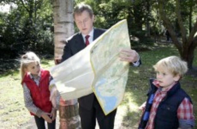 Taoiseach Enda Kenny launches National Trails Day with help from Eabha Last and Daniel Hayes. Sam Boal/Photocall Ireland