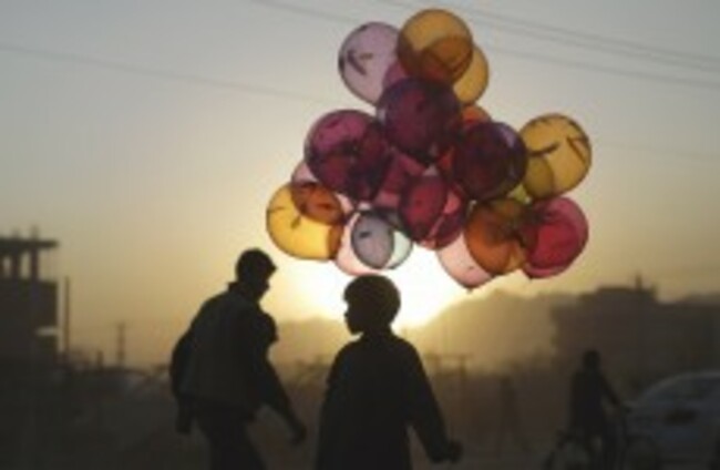 Balloon seller Mahfouz Bahbah, 12, at a roadside in Afghanistan Muhammed Muheisen/AP/Press Association Images