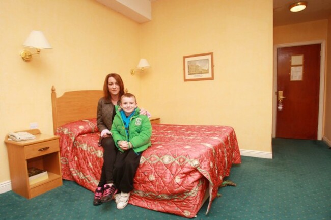 Niamh Ryan and her son Clyde – whose seventh birthday is today – at Dublin’s Regency Hotel after being forced to move out of their home at the controversial Priory Hall apartment complex (Leon Farrell/Photocall Ireland)