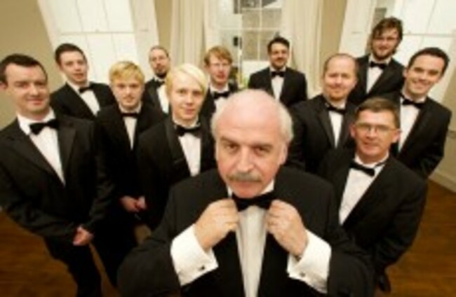 Lookin' sharp: Marty Whelan dressed in his own tuxedo along with volunteers from the Wexford Opera Festival at the National Gallery of Ireland launching the opera festival. Leon Farrell/Photocall Ireland