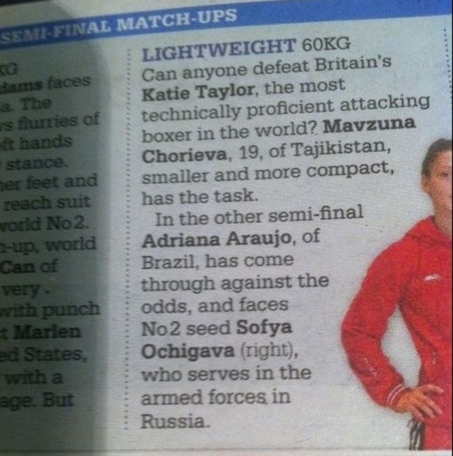 Update: The Telegraph have tweeted an apology for the mistake and after Taylor’s win in her Olympic semi-final, the newspaper’s editor added his best wishes. “Congratulations to Katie Taylor, from…ahem… Ireland…on reaching the boxing final,” Tony Gallagher wrote.