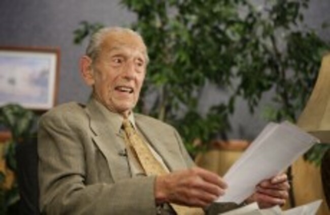 Harold Camping speaks during a taping of his show Open Forum in California last night. Camping now says the world will end in October. Marcio Jose Sanchez/AP