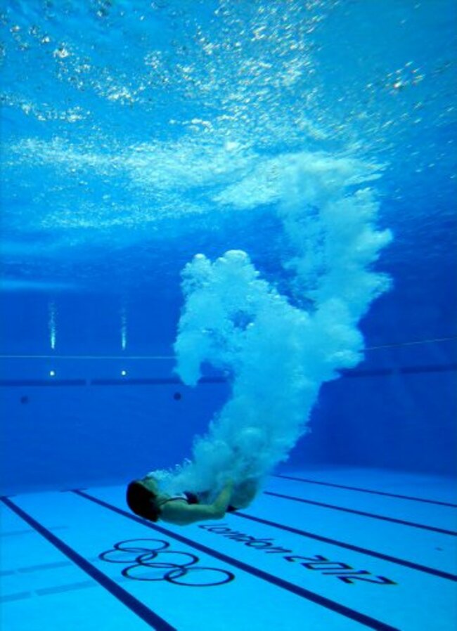 Great Britain’s Rebecca Gallantree in during the Women’s 3m Springboard Preliminary Round at the Aquatic Centre, London, on the seventh day of the London 2012 Olympics. Photo: Julien Behal/PA Wire/Press Association Images.