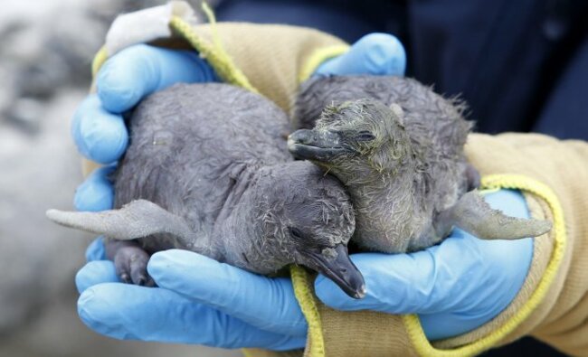 Let us introduce you to Dalek and Davros, two newborn baby Humboldt penguins born at Chester Zoo. Zookeepers have named all this years babies after characters from the television series Dr Who. Lovely Michelle in TheJournal.ie HQ noted earlier that they’re even smiling for the camera. (Image: Peter Byrne/PA Wire)