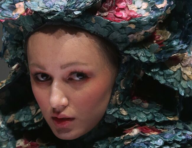 A model showcases a creation by French designer Yin Yiqing in Singapore during the French Couture 2012 Singapore fashion show. (AP Photo/Wong Maye-E)