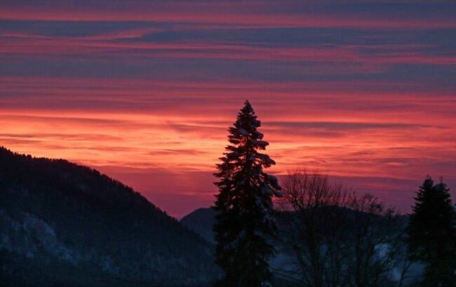 Sunset seen over mountains in Sochi, Russia, Sunday, Feb. 3, 2013. Temperatures in the mountains on Sunday is 4 degrees Celsius (39.2 degrees Fahrenheit). (AP Photo/Mikhail Metzel)