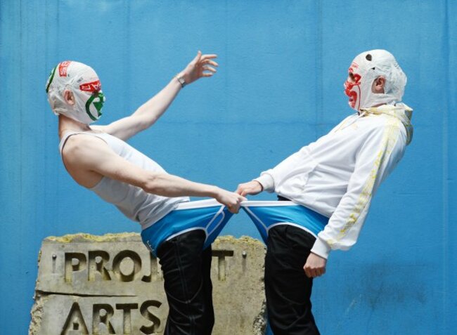 Pictured at the Project Arts Centre for Blue September – which challenges Irish men to face up to cancer – are the Rubberbandits, encouraging men to become more aware of their health. Photo: Sasko Lazarov/Photocall Ireland