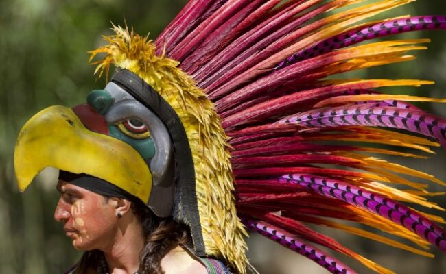 A traditional Mexican Indian dancer waits for the arrival of China’s President Xi Jinping, and his wife near the Mayan ruins of Chichen Itza, southern Mexico, Thursday, June 6, 2013. The Chinese first couple toured the Mayan ruins on the final day of their three-day visit with Mexico’s President Enrique Pena Nieto and his wife. (AP Photo/Eduardo Verdugo)