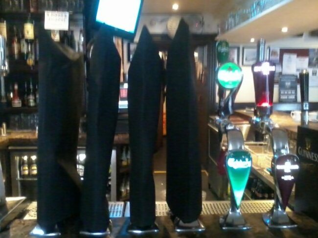 • We’re not sure what exactly it is – maybe because it looks like something from a future Prohibition era, a still from the Blair Witch Project-Ireland style or that the black things just have a disturbing resemblance to Ku Klux Klan hoods – but something about this shot of a Diageo-only bar celebrating Arthur’s Day perturbed and delighted us in equal parts.