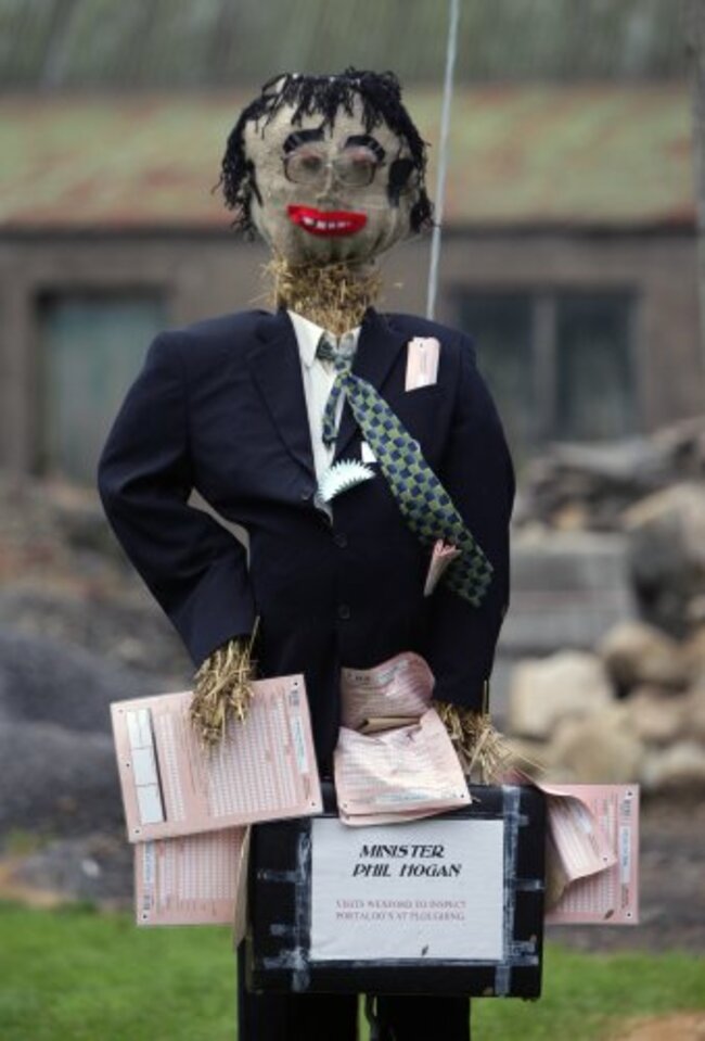 A scarecrow dressed as Environment Minister Phil Hogan at the National Ploughing Championships at New Ross, Co.Wexford, on the last day of the Championships. Image: Niall Carson/PA Wire/Press Association Images