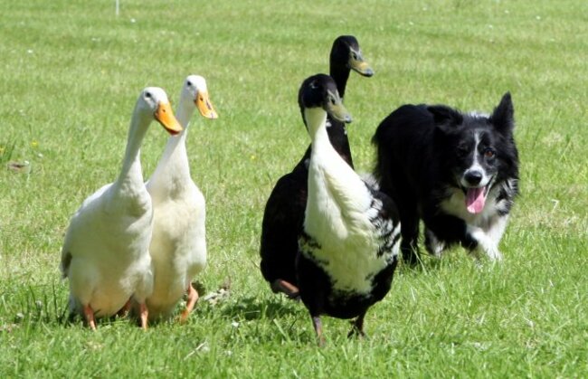 • This is our second favourite pic of the day – a dog rounding up geese at the aforementioned Dalriada festival. They look fairly nonplussed. (Pic: Paul Faith/PA Wire/Press Association Images)