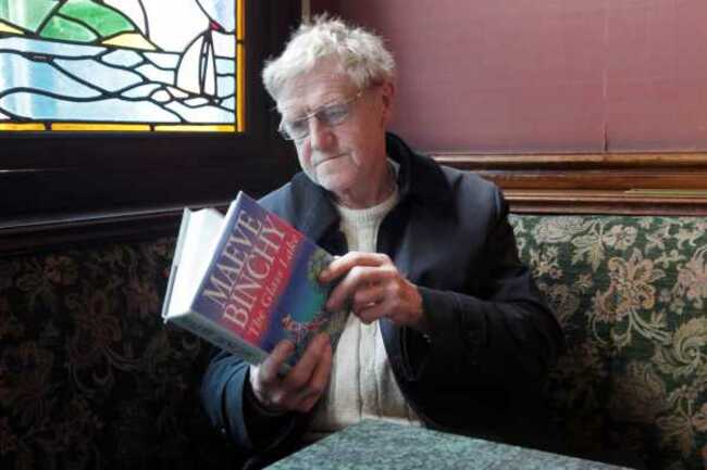 Actor Eamon Morrissey reads one of Binchy’s books in Finnegans of Dalkey, next door to the house which she shared with her husband Gordon Snell. Photo: Mark Stedman/Photocall Ireland.